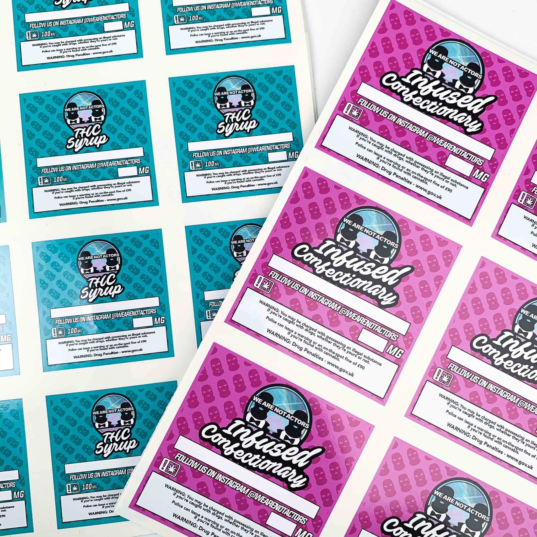 Stickers cut down and supplied on sheets with multiples. If you are looking for Die-Cut stickers then please see our Die-Cut section from the menu above.