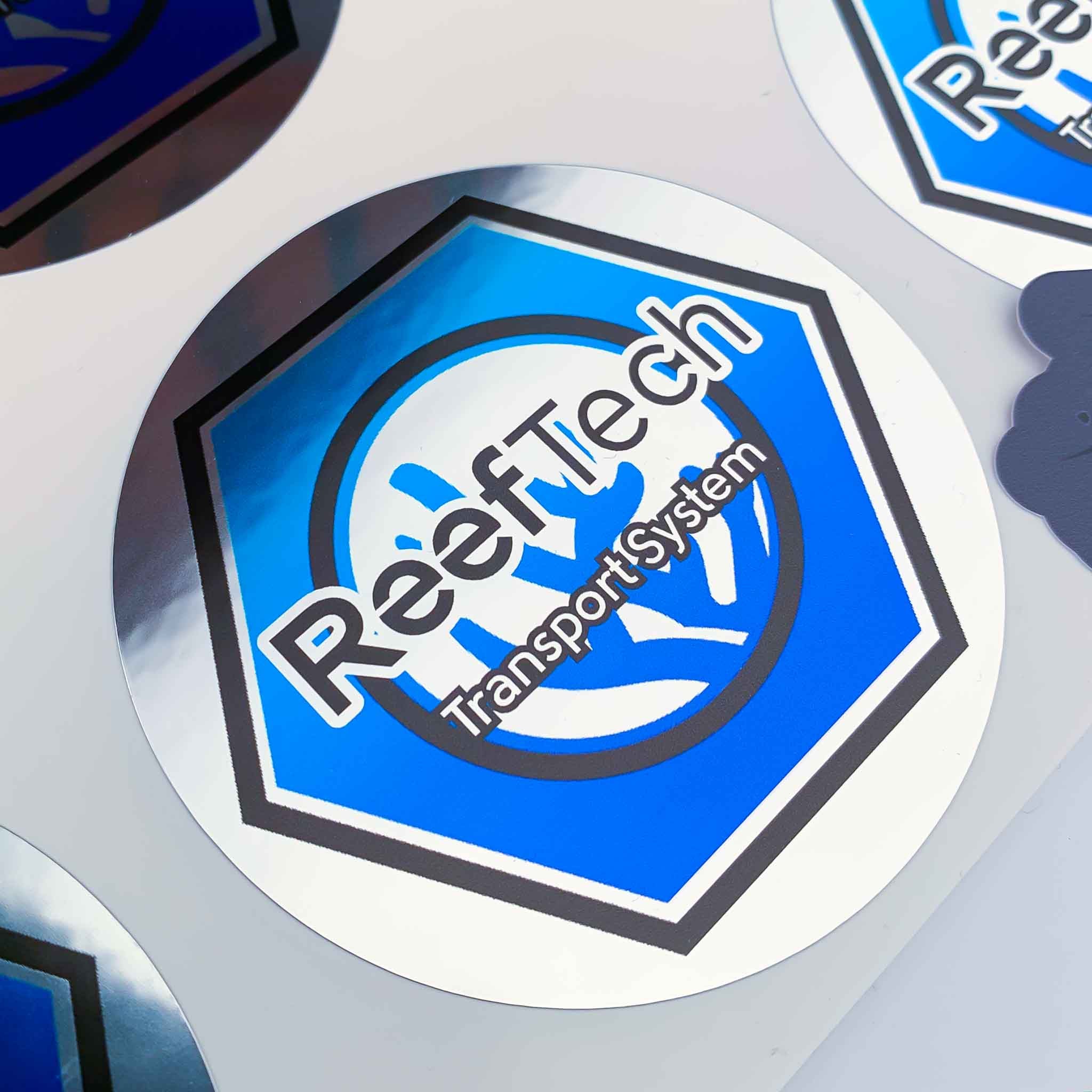Printed and cut on shiny 78 micron silver metallic self-adhesive vinyl.